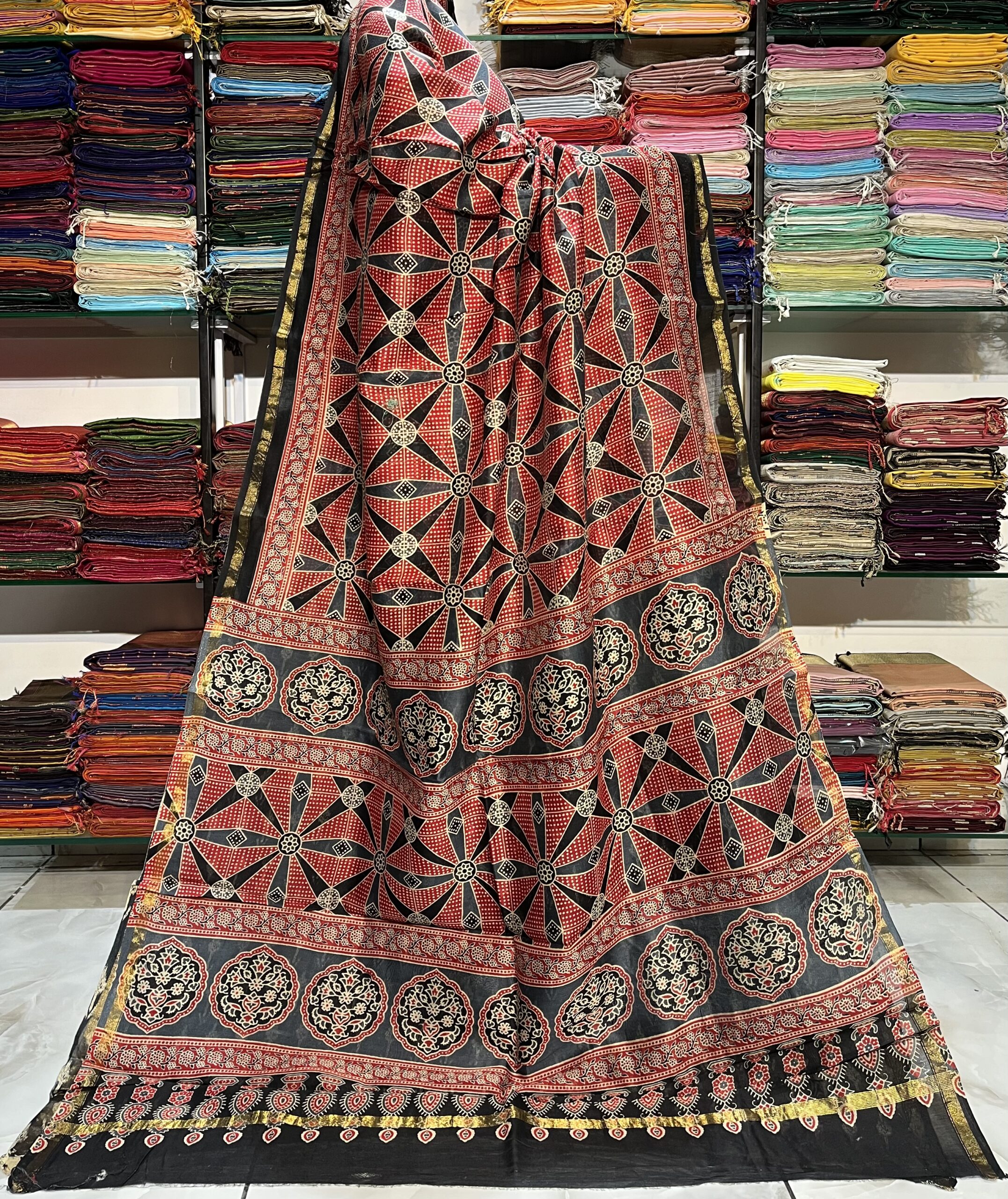 Maheshwari Ajrakh Print Saree