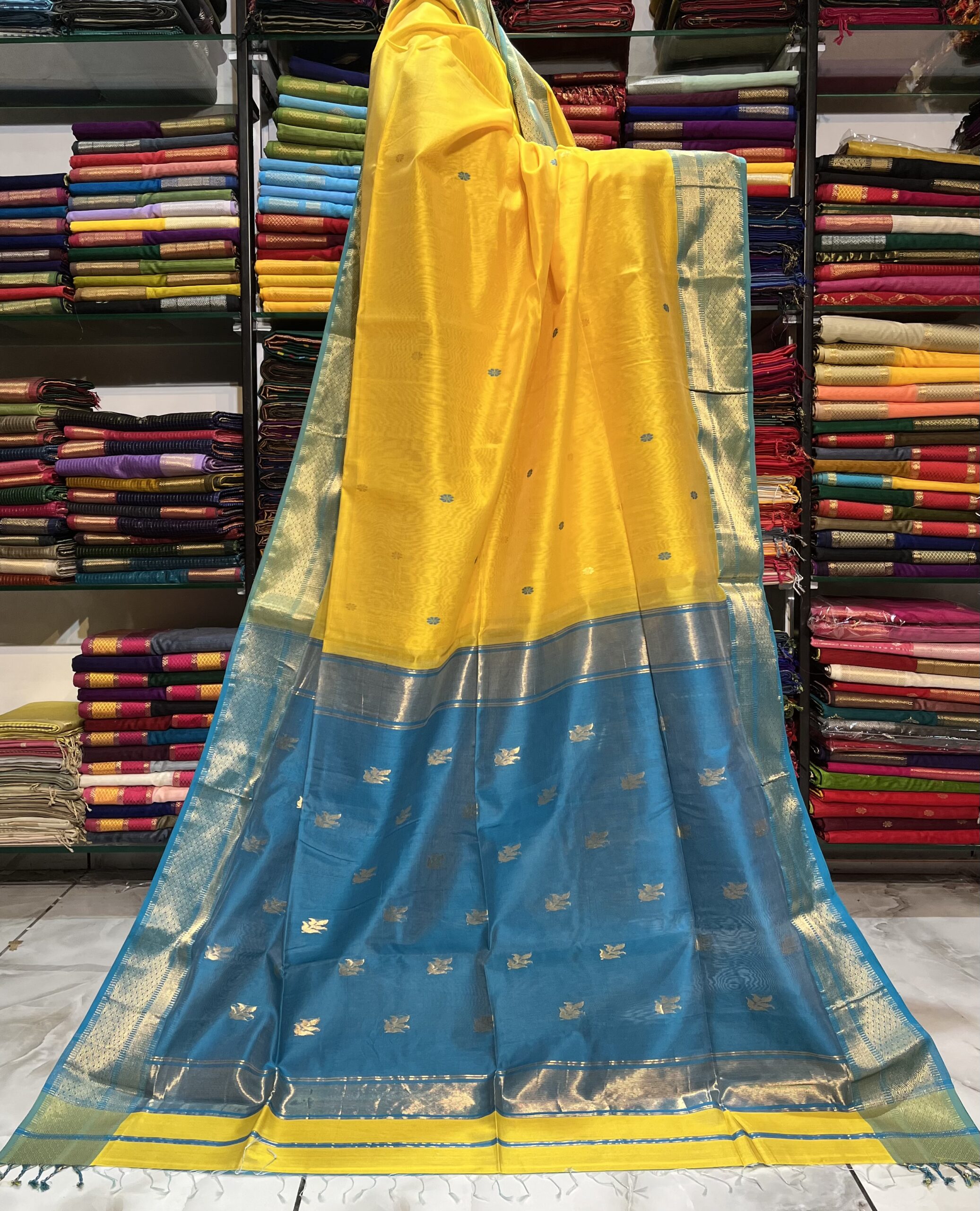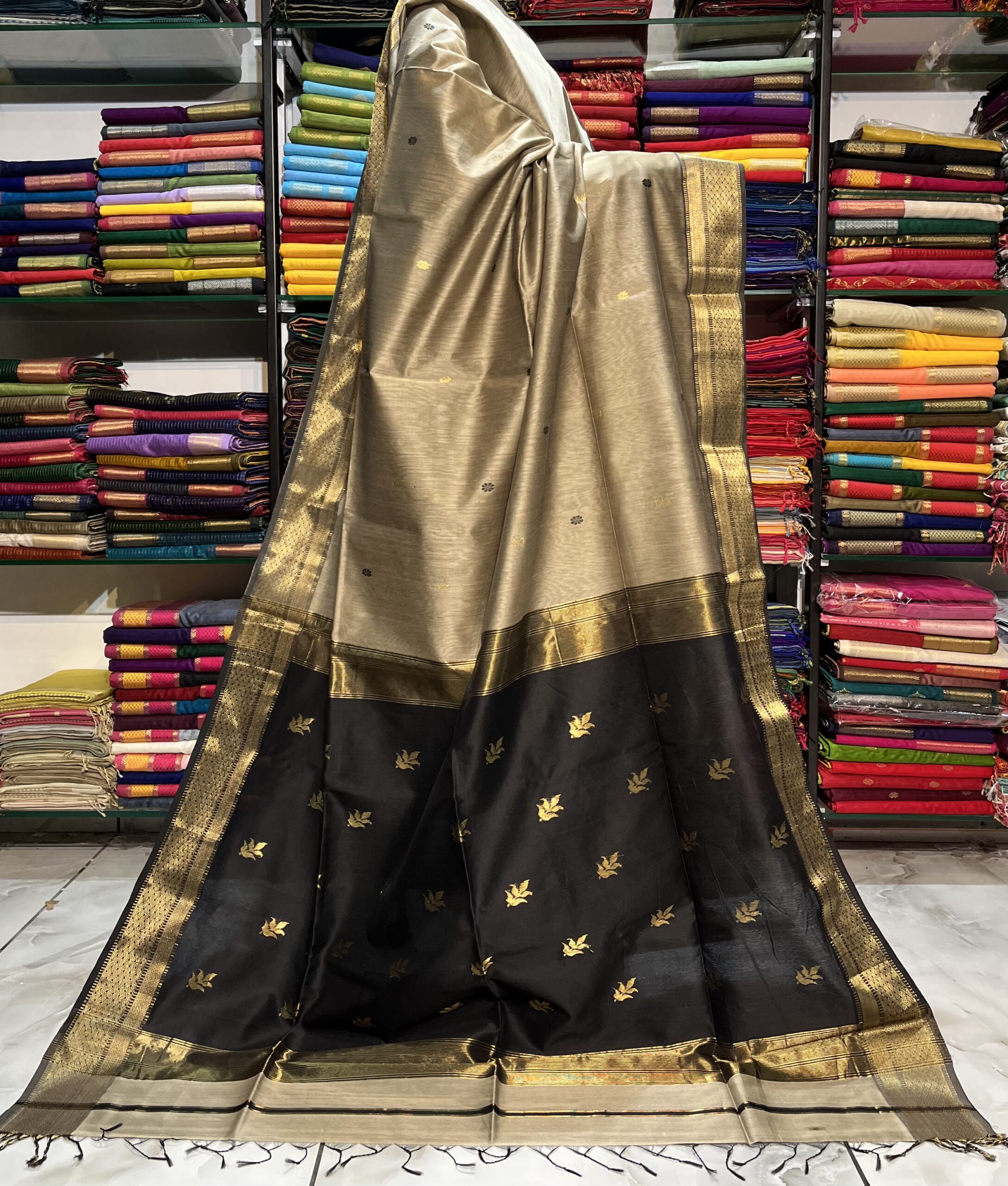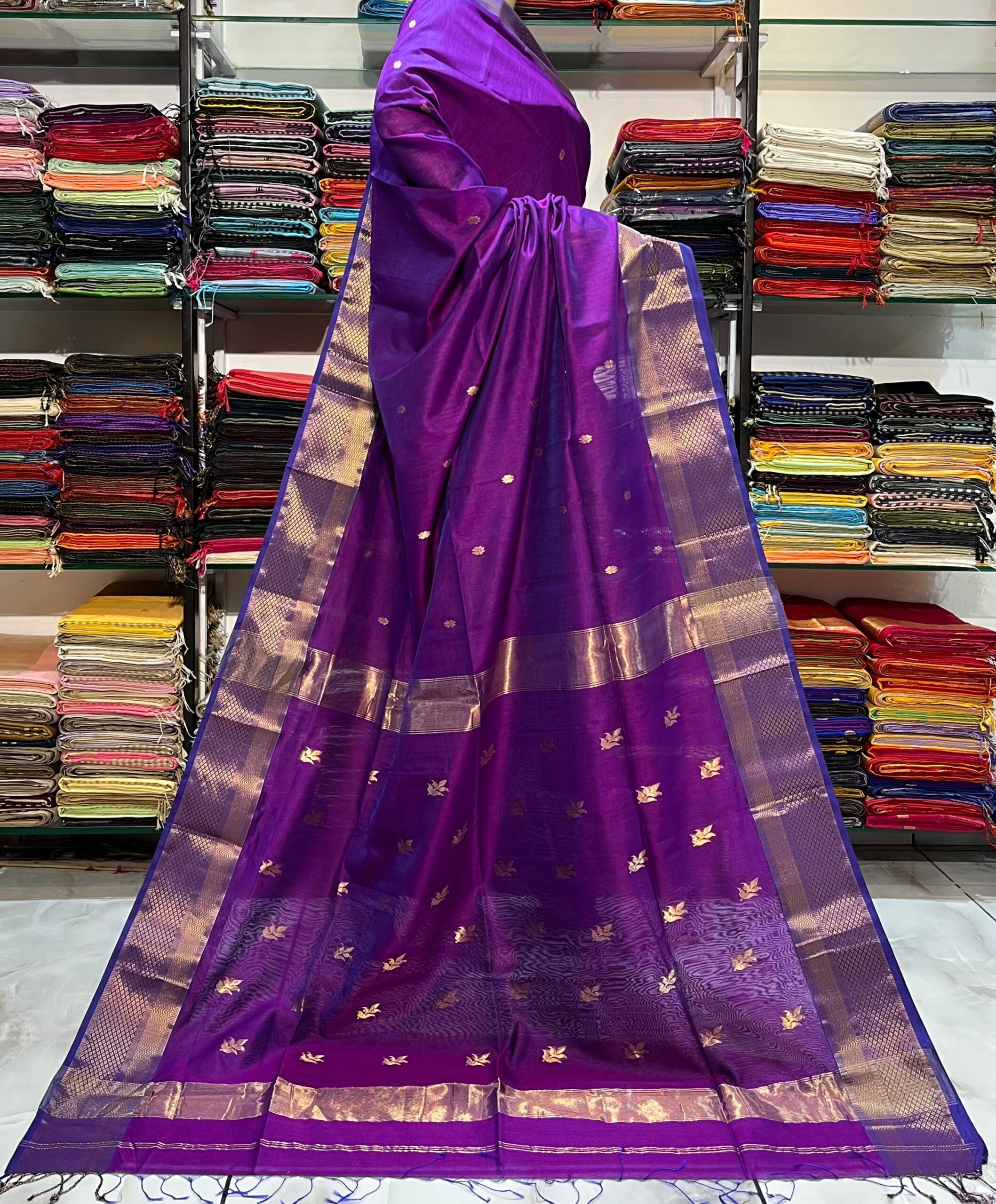 Be the first to review “Maheshwari Leaf Buti Pallu Saree”