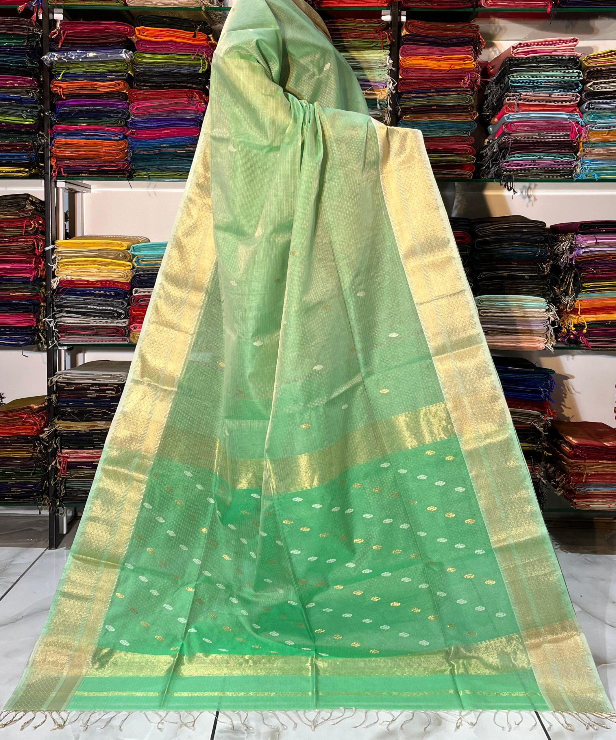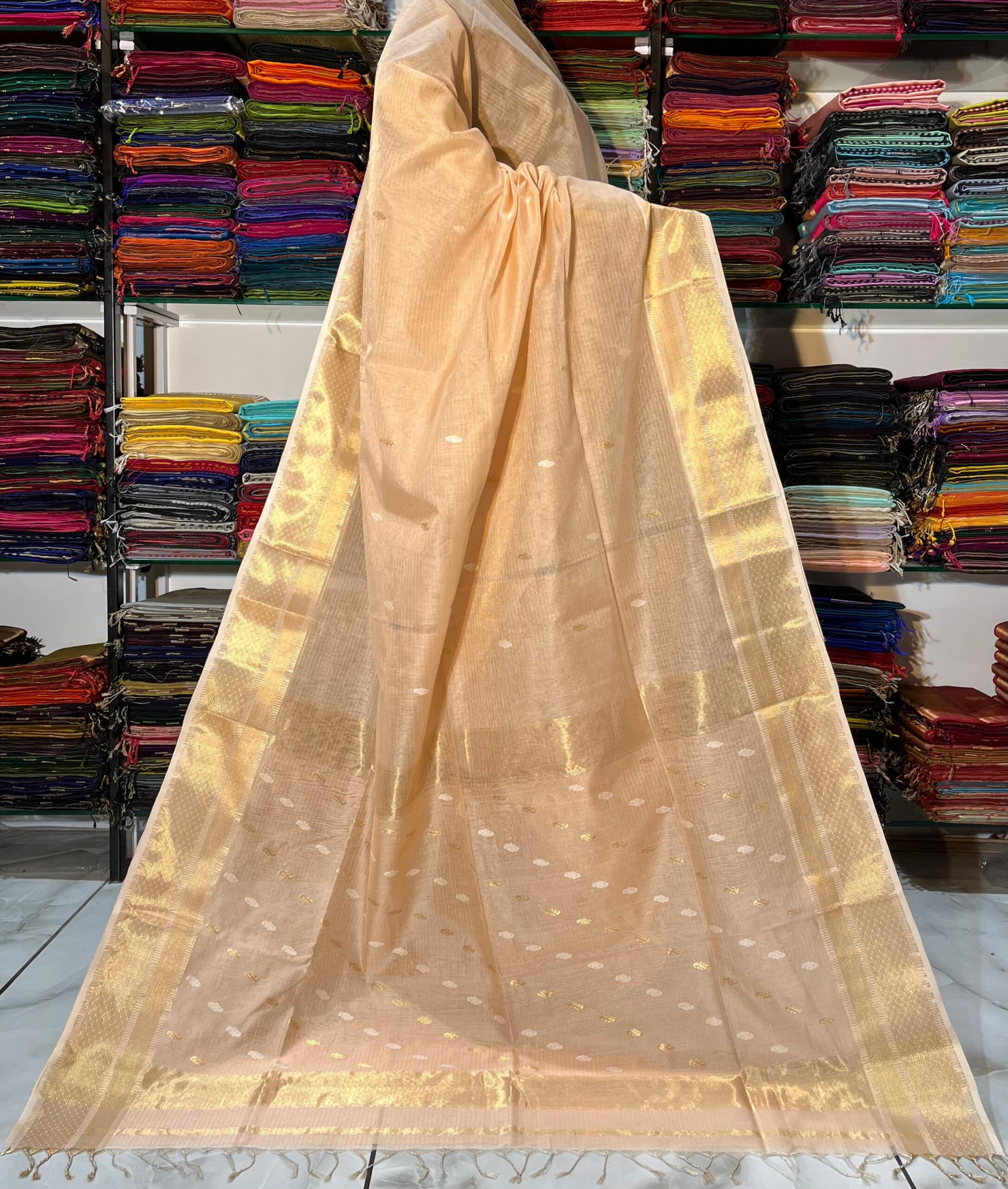 Maheshwari Tissue Dollar Zari Buti Saree