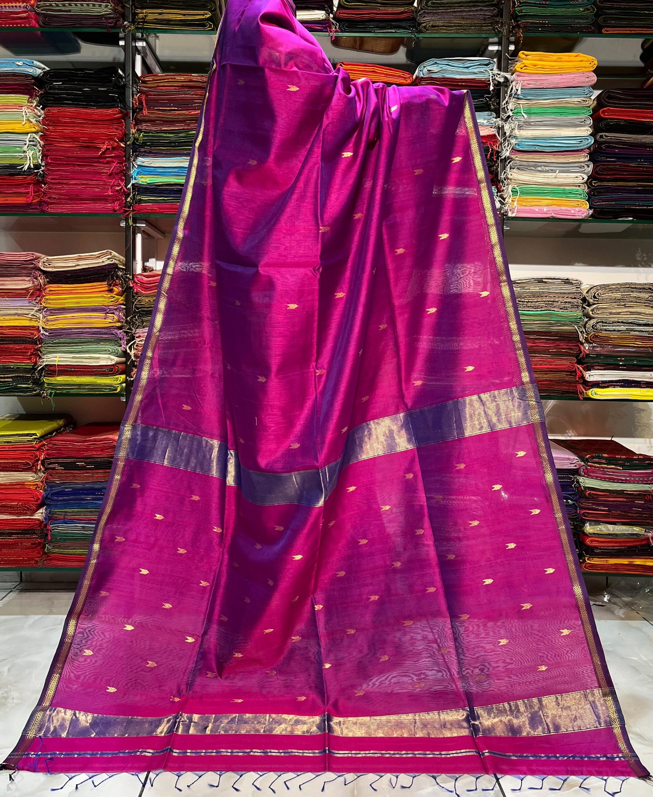 Maheshwari V Zari Border Buti Saree