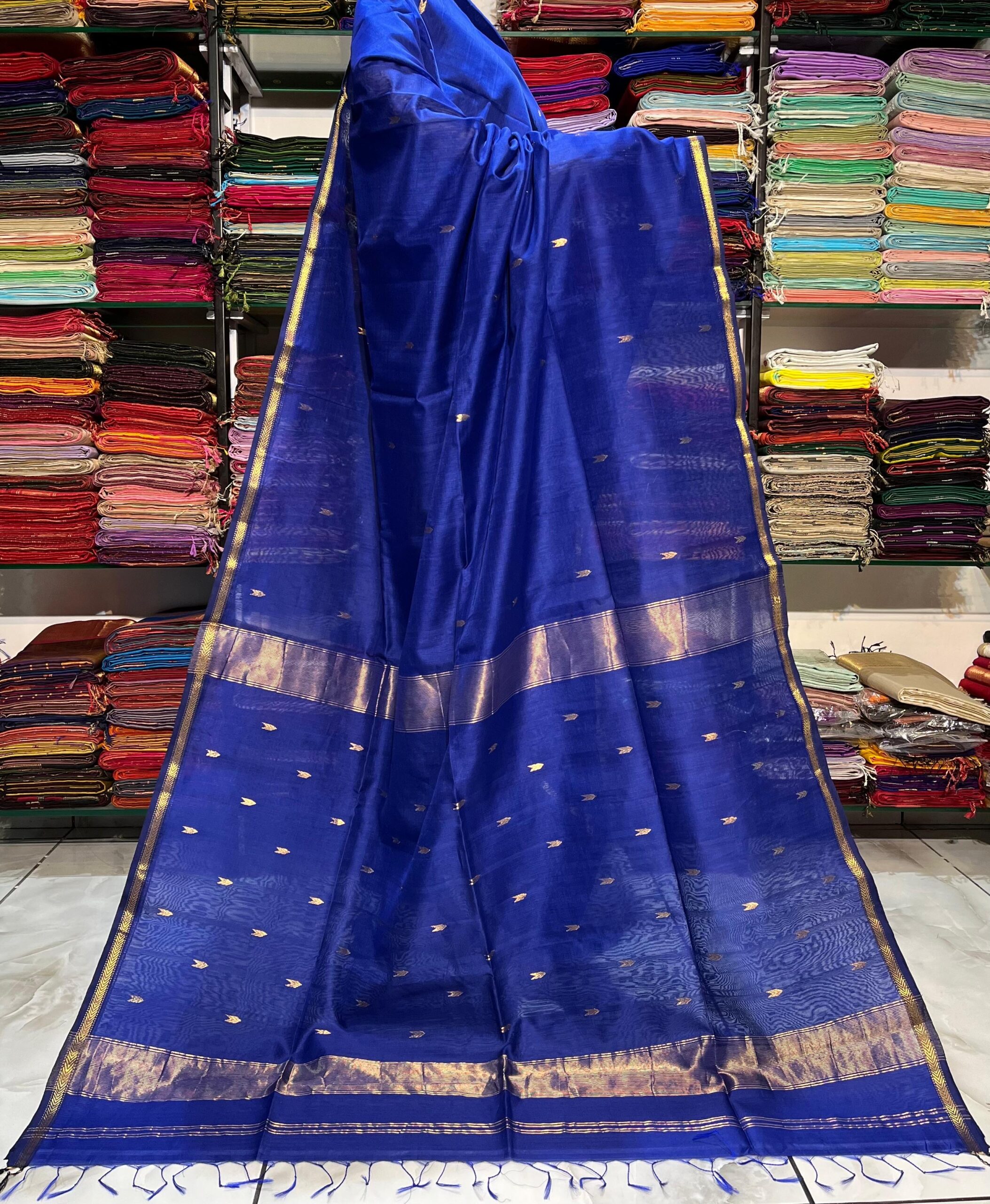 Be the first to review “Maheshwari V Zari Border Buti Saree”