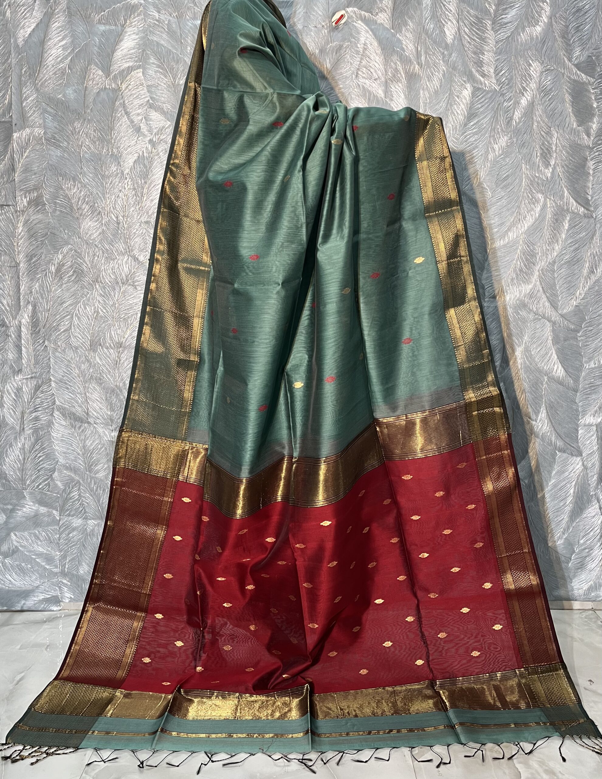 Be the first to review “Maheshwari W Scott Zari Border Buti Saree”